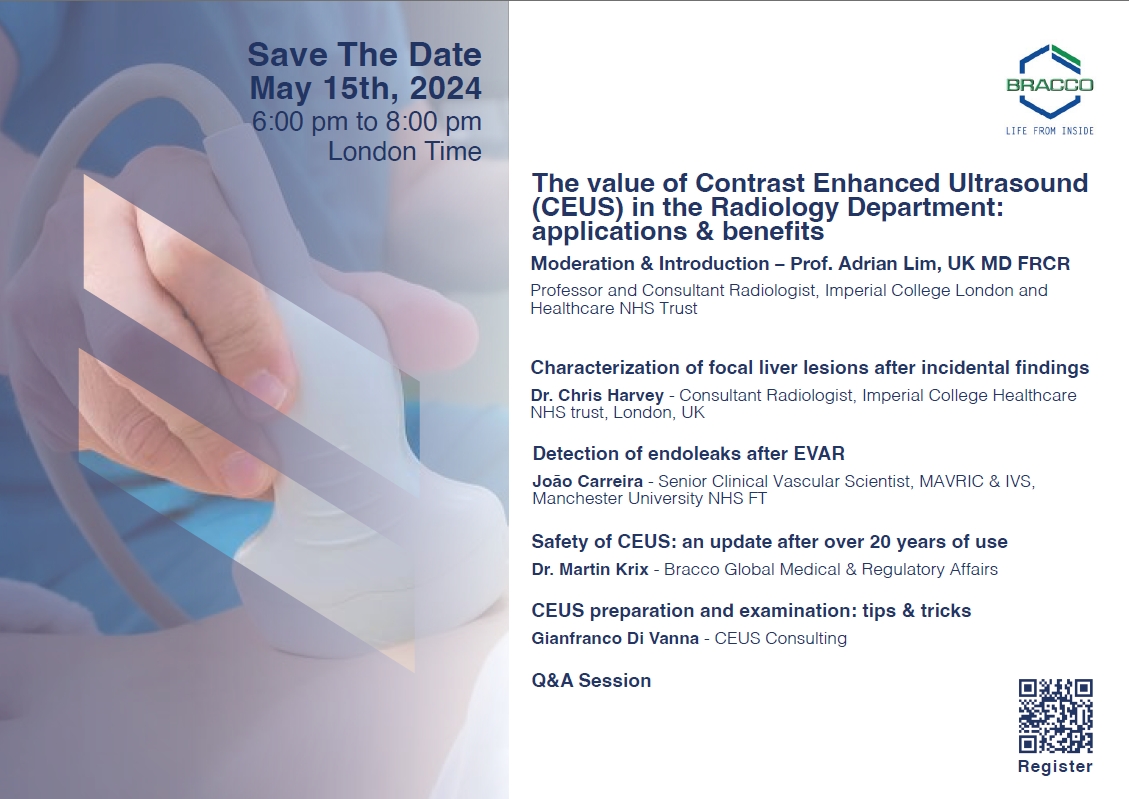 Join this free webinar and increase your CEUS knowledge. There will be a Q&A session, so you can ask all your questions to the faculty.